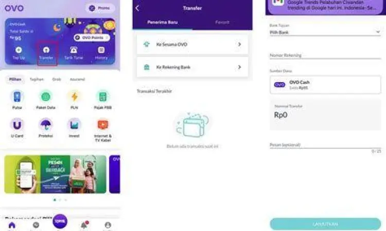 Cara Transfer OVO Ke Rekening Bank dan Sesama Pengguna