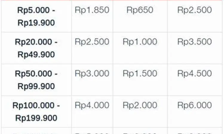 | Biaya/Potongan | Tergantung Rate Admin | Biaya Admin + Rate | Biaya Standar Operasional |