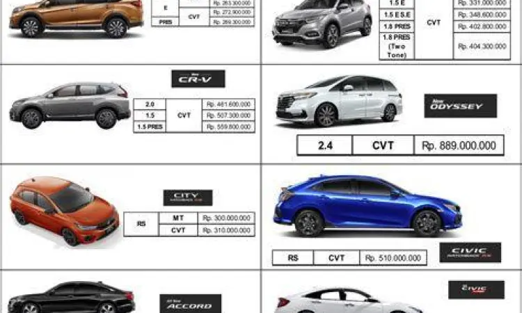 | Honda Brio Satya | Rp151.400.000 | Rp175.400.000 |